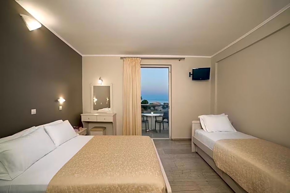 This bright and air-conditioned room offers views of the Ionian Sea or the garden from its furnished balcony. It is equipped with a TV and mini fridge. Daily cleaning is available while towels and linen are changed every 3 days.